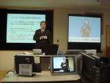 当日は、筑波技術大学コミュニケーション支援研究グループ(代表:内藤一郎氏)の協力により、東京会場(日本財団)で行われている講義の様子がテレビ会議システムを用いて同志社大学、愛媛大学、金沢大学の3会場に配信され、合計4会場での多地点同時開催となりました。いずれの会場でも、インターネットを介して送られてくる映像に参加者の視線が釘付けとなり、テクノロジーの進歩と充実した講座の内容にとても感激されていました。